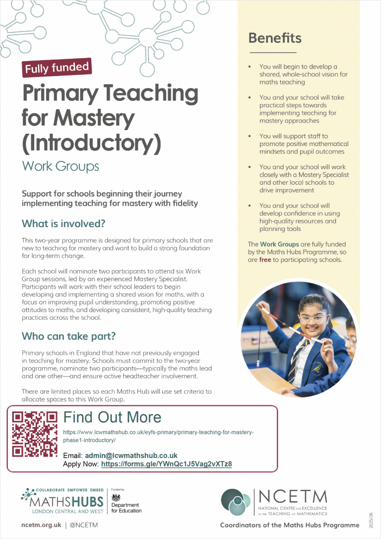 This work is being carried out by your Maths Hub Lead School, which holds a grant with the Department for Education (DfE) to deliver the Maths Hub programme.