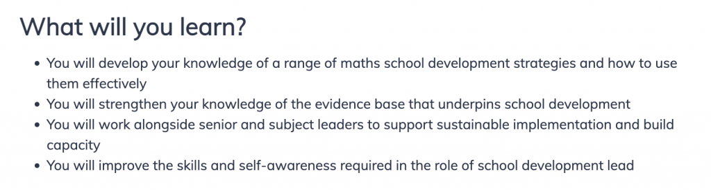 Support for maths leads whose role is to lead change in a school or group of schools other than their own