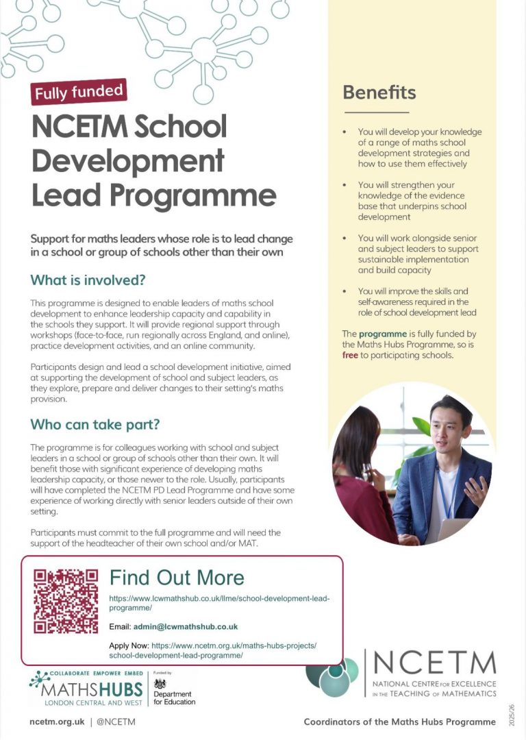 This work is being carried out by your Maths Hub Lead School, which holds a grant with the Department for Education (DfE) to deliver the Maths Hub programme.
